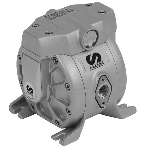 Luftbetriebene Doppelmembranpumpen zum Dosieren, Sprühen, Umpumpen und Verteilen einer Vielzahl von Flüssigkeiten mit niedrigen bis mittleren Durchflussmengen. Die medienberührenden Teile der Pumpe sind auch für die aggressivsten Flüssigkeiten und den Einsatz in korrosiven Umgebungen geeignet. Der Luftmotor (pneumatisches Wegeventil und Luftkammerabdeckungen) besteht aus Polypropylen. Für den Einsatz in explosionsgefährdeten Bereichen sind vollständig erdungsfähige Pumpen mit ATEX-Zertifizierung erhältlich (Ex II2 GD IIB/IIC 95 ?C). Übersetzungsverhältnis: 1:1 Max. freie Fördermenge*: 50 l/Min. (14 US gal/Min.) Fördermenge pro Hub (ca.) *: 0,1 Liter (0,026 US gal) Fördermenge je Zyklus (2 Hübe)*: 0,2 Liter (0,05 US gal) Luftdruck-Betriebsbereich: 1,5 bis 8 bar (22 bis 115 psi) Max. Größe der Feststoffe in Suspension: 3 mm (1/8 Zoll) Max. Trockenansaughöhe*: 6 m (20 Fuß) Max. Nassansaughöhe*: 8 m (26 Fuß) Gewicht: 2,2 kg (4,85 lb) Anschluss Saugseite: 1/2 Zoll BSP (F) Anschluss Druckseite: 1/2 Zoll BSP (F) Luftanschluss: 3/8 Zoll NPSM (F) Materialien der medienberührenden Teile Siehe Tabelle |