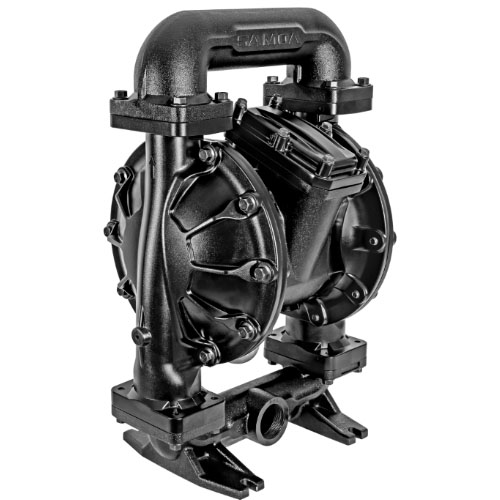 Die 2 Zoll(51 mm) druckluftbetriebenen Doppelmembranpumpen aus Metallguss eerreichen eine Förderleistung von bis zu 650 l/min (172 gal/min) und bieten eine große Auswahl an Konstruktionsmaterialien und Anschlusskonfigurationen. Die Pumpenkonstruktion gewährleistet eine hohe Abriebfestigkeit beim Fördern von abrasiven Medien und einen geringen Strömungswiderstand. Gegenüberliegende Ein- und Auslassanschlüsse sind Standard. Die Ein- und Auslassverteiler können um 180º gedreht werden, um eine maximale Vielseitigkeit bei der Pumpeninstallation zu gewährleisten. Diese Pumpen werden häufig zum Umfüllen, Abfüllen, Umwälzen und zur Chargendosierung in einer Vielzahl von Branchen eingesetzt. Übersetzungsverhältnis: 1:1 Maximale Förderleistung: 650 l/min (172 US gal/min) Betriebsdruck: 1,5 bis 8 bar (20 bis 120 psi) Feststoffe in Suspension, Max. Größe: 6,4 mm (1/4 Zoll) Max. Trockenansaughöhe: 5 m (16 Fuß) Max. Nassansaughöhe: 8 m (26 Fuß) Verdrängung pro Zyklus*: 4,5 l (1.2 gal) Flüssigkeitsein- und -auslassanschlüsse: 2 ZollBSP (F) Luftanschluss: 3/4" NPT (F) Luftauslass: 1 1/2 ZollNPT (F) Schallpegel: 85 dB (A) @ 50 Zyklen/min @ 70 psi |