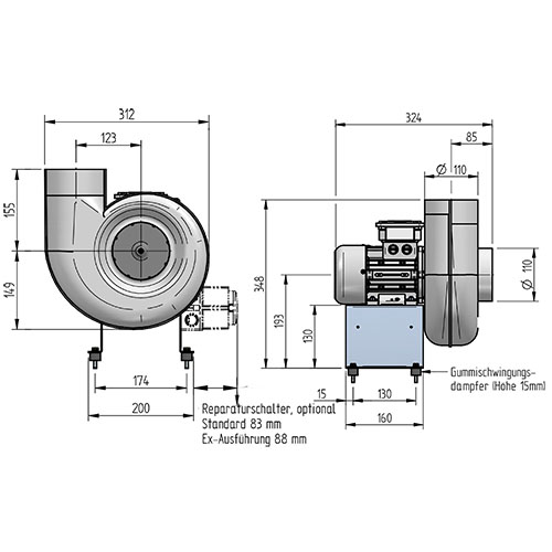 Kleinradialventilator HFR 110-18 D/ 4/ Exe Z1