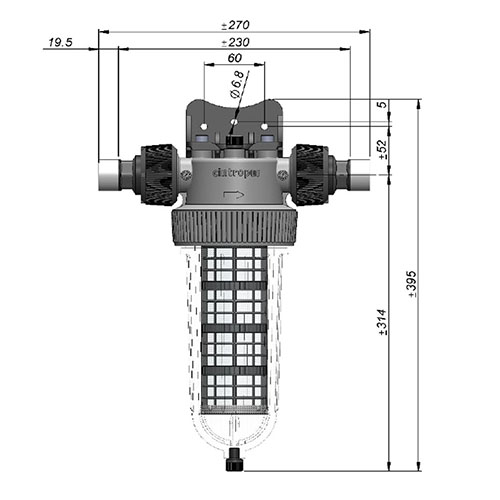 Cintropur Filtergehäuse Typ NW 25 1" - Filtertyp: NW25 - Anschlüsse: 1” - Durchfluss : 5,5 m³/h bei delta P 0,2 bar - Betriebsdruck: 10 bar, max. Druck: 16 bar - Max. Betriebstemperatur: 50°C - Filterkopf: Polypropylen (PP) + 20% Glasfaser (GF) - Filterglocke: StyreneAcrylonitrile(SAN) - Filterstützkorb: PP + 20 % GFO‘ - Ringe: Nitril Butadien Rubber (NBR) - Zentrifuge + Abschlussdeckel: Polyethylen (PE) - Entleerungsschraube: Polyamid(PA) + Polyester (2K) Filterschlüssel: ABS - Filtervlies: Polyester - Filteroberfläche: 450 cm² - Serienmäßige Ausstattung: Filtervlies in 25 Mikron, Schlüssel + 2 Anschlüsse ¾’’ oder 1 - Optionen: Wandhalterung aus PP + 30% GF, Ablasskugelhahn ¼’’ Messing vernickelt + Manometer 1/8’’ Messinggewinde Sonstige verfügbare Feinheiten: Nichtwaschbar: 5-10-25-50-100 Mikron (Set von 5 Filtervliesen) Waschbar: 150 300 Mikron |