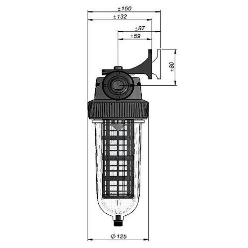 - Einfache und bequeme Entleerung (Ablasskugelhahn am Boden des Gehäuses).
