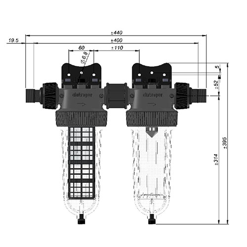 - Serienmäßige Ausstattung: Filtervlies in 25 Mikron, mit Aktivkohle befüllte CTN-Kartusche,1 Schlüssel, 2 Wandhalterungen ausPP + 30% GF + 2 Anschlüsse ¾’’ + 2 Anschlüsse 1’’