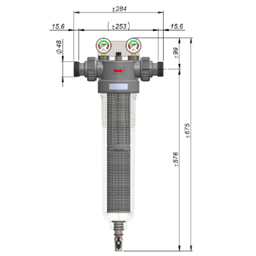 Filtertyp:NW400 - Anschlüsse: 1 ½ Zoll - Durchfluss: 12 m³/h bei ?P 0,2 bar - Betriebsdruck: 10 bar - Max. Druck: 16 bar - Max. Betriebstemperatur: 50°C - Filterkopf: Polypropylen (PP) + 20%Glasfaser (GF) - Anschlüsse: PA - Überwurfmutter: PP + 20% GF - Filterglocke: PET - Filterschlüssel: ABS - Filterstützkorb: PP + 20 % GF - O’Ringe: Nitril Butadien Rubber (NBR) - Zentrifuge + Abschlussdeckel: Polypropylen (PP) + Schaumgummi (2K) - Entleerungsschraube: Polyamid (PA) + Polyester (2K) - Filtervliese: Polyester (nicht waschbar) oder Nylon (waschbar) - Filteroberfläche: 1010 cm² - Serienmäßige Ausstattung :Filtervlies in 25 ?m, Schlüssel, Ablasskugelhahn ½ ” Messing vernickelt,2 Manometer mit Glycerin 0-20 bar ¼’’ Messing + 2 Anschlüsse 1 ½’’ - Option: Wandhalterung aus Edelstahl in 2 mm - Sonstige verfügbare Feinheiten :Nichtwaschbar: 1 -5-10 -25-50-100 Mikron (Set von 5 Filtervliesen) Waschbar: 150-300 Mikron |
