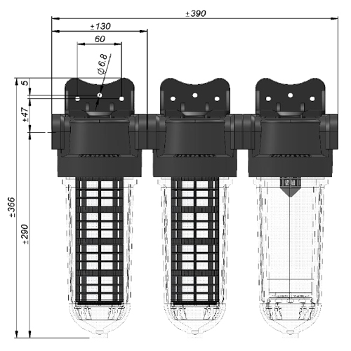 Filtertyp: SL240 TRIO-CTN - Anschlüsse: ¾ Zoll - Durchfluss: 0,5 m³/h bei 0,2 bar deltaP - Betriebsdruck: 8 bar, max. Druck: 12 bar - Max. Betriebstemperatur: 50°C - Filterkopf: Glasfaser verstärktes Polypropylen (PP) - Filterglocke: StyreneAcrylonitrile(SAN) - O’Ring: Nitril Butadien Rubber (NBR) - Filterschlüssel: ABS - Filterstützkorb: PP + 20% GF - Zentrifuge und Abschlussdeckel: Polyethylen (PE) - Filtervliese: Polyester (nicht waschbar) oder Nylon (waschbar) - Filterfläche + Volumen: 440cm² mit Vliesen + 0.57L mit Aktivkohle CTN-Aktivkohlekartusche: SAN 0.6mm + PP mit 20% GF (Abschlussdeckel) 0.3mm - Serienmäßige Ausstattung: Filterfliese 100?m + 25 Mikron, mit Aktivkohle befüllte CTN-Kartusche, Schlüssel, 2 Wandbefestigungen aus PP + 30% GF - Sonstige verfügbare Feinheiten: Nicht waschbar: 1 5 10 25 50 100 Mikron Waschbar: 150 300 Mikron |
