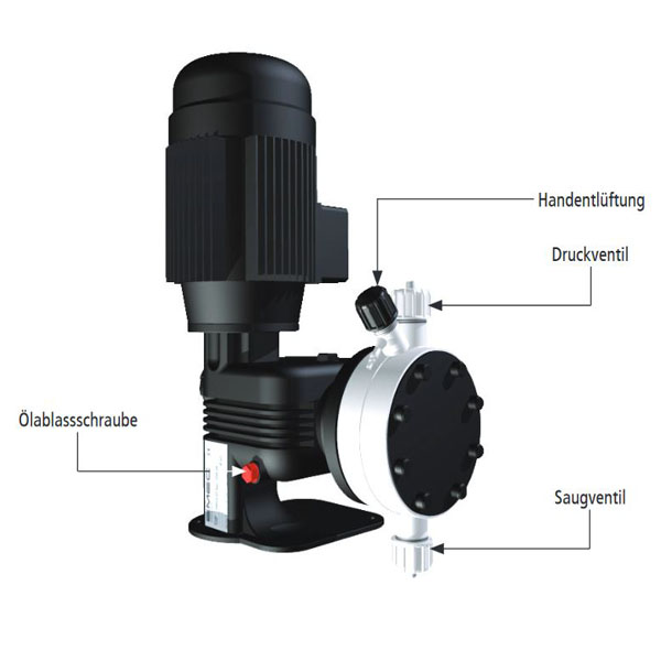 | - 50 HZ 1-Phasen Wechselstrom - mit Mikroprozessorsteuerung - mit Display und Encoder (Dreh- /Drückknopf) für eine komfortable Bedienung - Acht Betriebsmodi sind wählbar: Konstant, Proportional ppm(mg/l), Proportional %, Proportional mit Impulskontakt Über-/Untersetzung, Batch, Start/Pause, mA und Volt - Elektronikgehäuse komplett vom Hydraulikteil getrennt und in 3 Richtungen drehbar - Multifunktionseingang für Impulskontakt 0/4 - 20 mA und =-10 V oder Start-Pause - MODBUS-Schnittstelle (Optional) - Digitaleingang für Niveauschalter (Leermeldekontakt) mit einstellbarer Schaltrichtung - Stufenlose Verstellung der Hublänge 0-100% und der Hubfrequenz 10-100% - Manuelle Dosierkopfentlüftung bei PVDF, PP und PVC Dosierköpfen - Getriebegehäuse: aus Aluminium, Epoxy-beschichtet - Membrane aus PTFE - Spannungsversorgung: 220-240 VAC 50 HZ - Frequenz: Motoren für 50 Hz oder 60 Hz - Schutzart: IP54 |