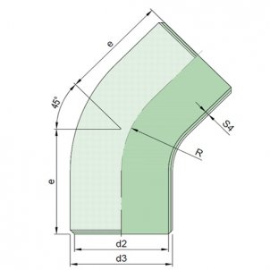 UP-GF Bogen 45° DIN 16 966, Form E2, Rohrtyp D, mit Laminatenden, PN 10