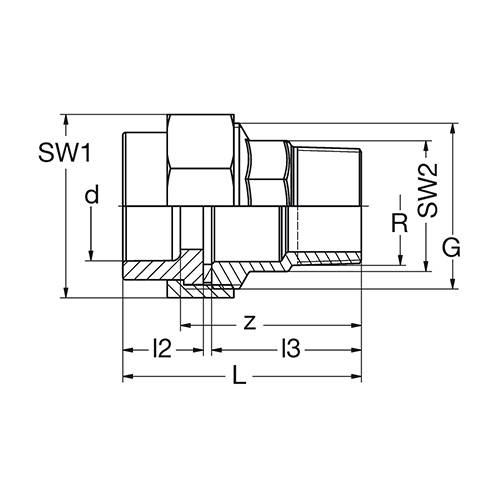 PP-RCT-V2A Ü-Verschraubung IG-zyl grün Flachdichtring-EPDM 20°C/1.0MPa