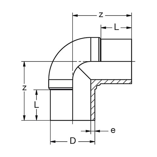 Gespritzte Formteile, für die Heizelement-Stumpf-Schweißung und die Heizwendel- Muffen-Schweißung (nur lange Ausführung); ohne Verschwächungsbeiwerte. Werkstoff PP-RCT (Polypropylen Random-Copolymer Temperature resistant) mit modifizierter Kristallstruktur (beta nukleiert) und erhöhter Temperaturbeständigkeit, Borealis RA7050GN, Farbe RAL 6024 Verkehrsgrün.Das Material entspricht den Anforderungen der aktuellen KTW-Leitlinie des Umwelt-bundesamtes (UBA). Geometrische Eigenschaften Außendurchmesser und Wanddicke entsprechend DIN EN ISO 15874.Toleranzen bei den Z-Maßangaben sind abhängig von der Dimension. Bis d/D 160 = +/- 3 mm. Ab d/D 180 = +/- 10 mm. Betriebsdruck Der Betriebsdruck richtet sich nach der SDR Klasse und dem eingesetzten Rohr. Ausführung Geeignet für Heizelement-Stumpf-Schweißung und Heizwendel-Muffen-Schweißung nach DVS Richtlinie 2207. Schweiß-Geräte und Schweiß-Werkzeuge sollten der DVS Richtlinie 2208 entsprechen. Zertifizierung B-R Formteile unterliegen regelmäßigen internen und externen Qualitätskontrollen. Die Formteile erfüllen die Anforderungen der DIN Certco Richtlinie ZP 10.25.1 und NSF14 + 61 |