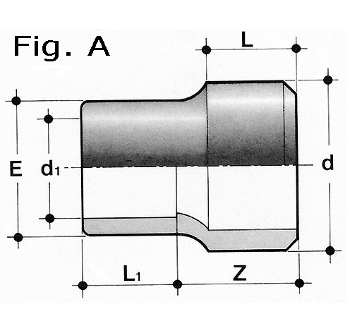 PVC U Reduktion, lang, Klebemuffe/Klebestutzen