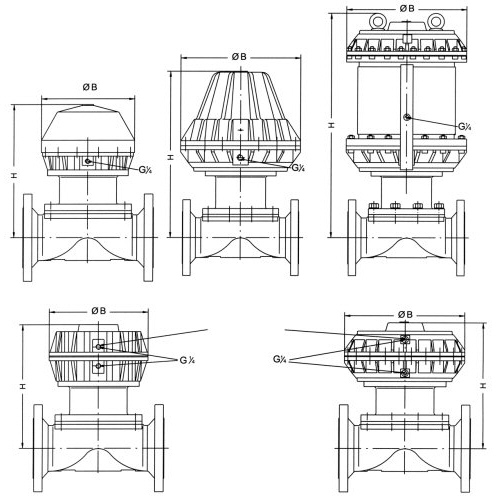 | 2/2-Wege-Metallflansch-Membranventil, Funktion NO, Steuerluftanschluss 90° zum DurchflussVerfügbarkeit: 2 Wochen |